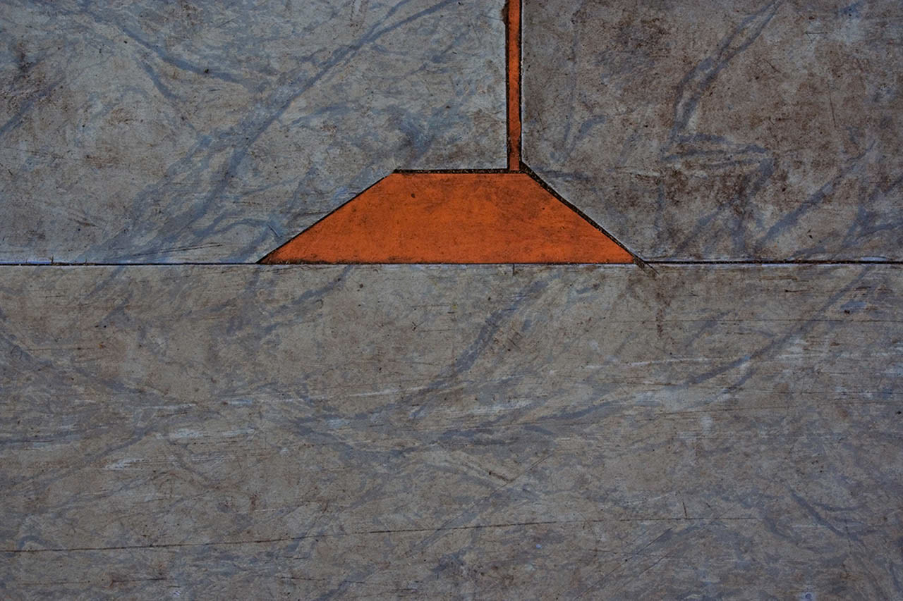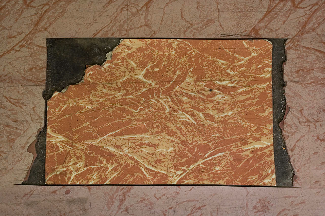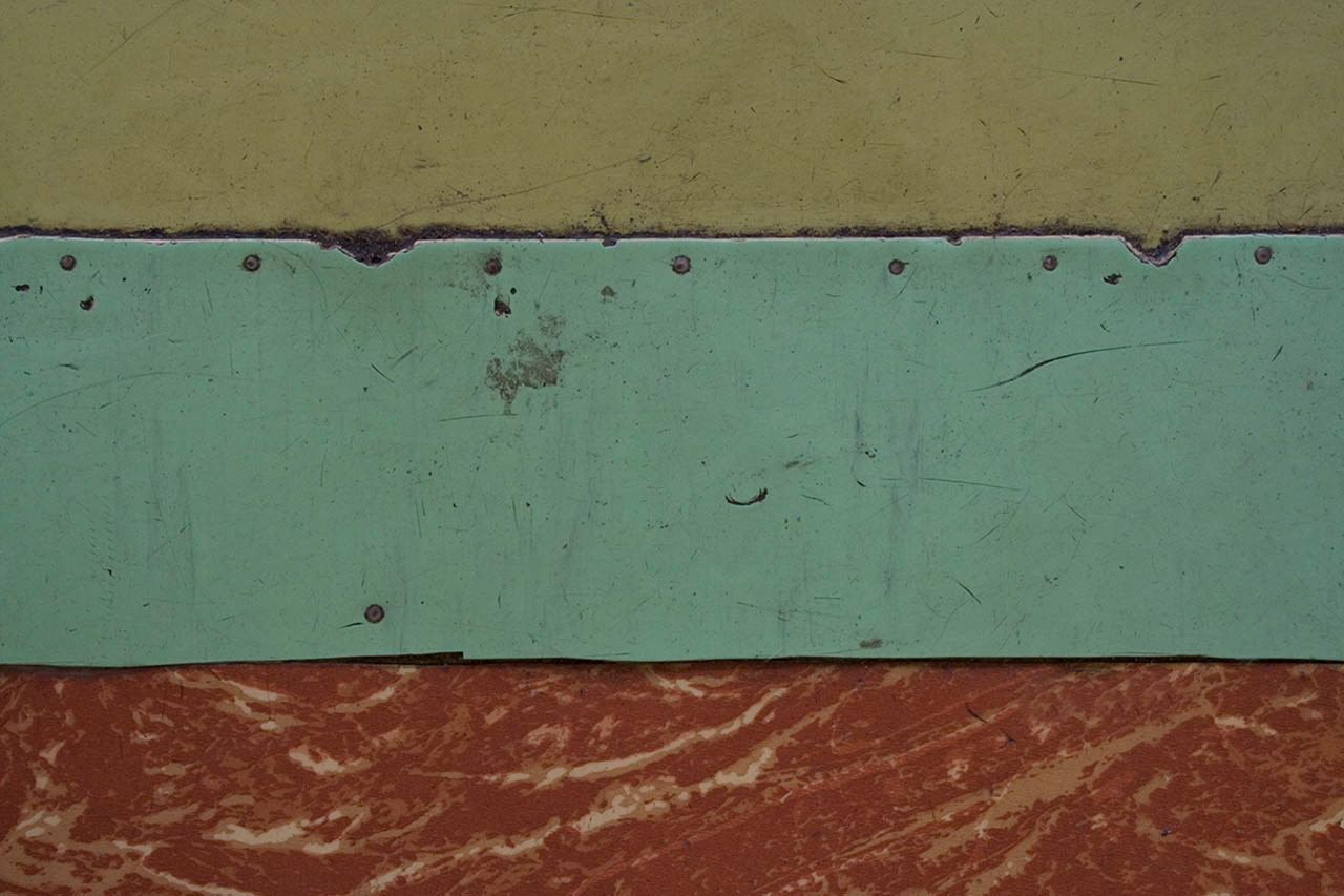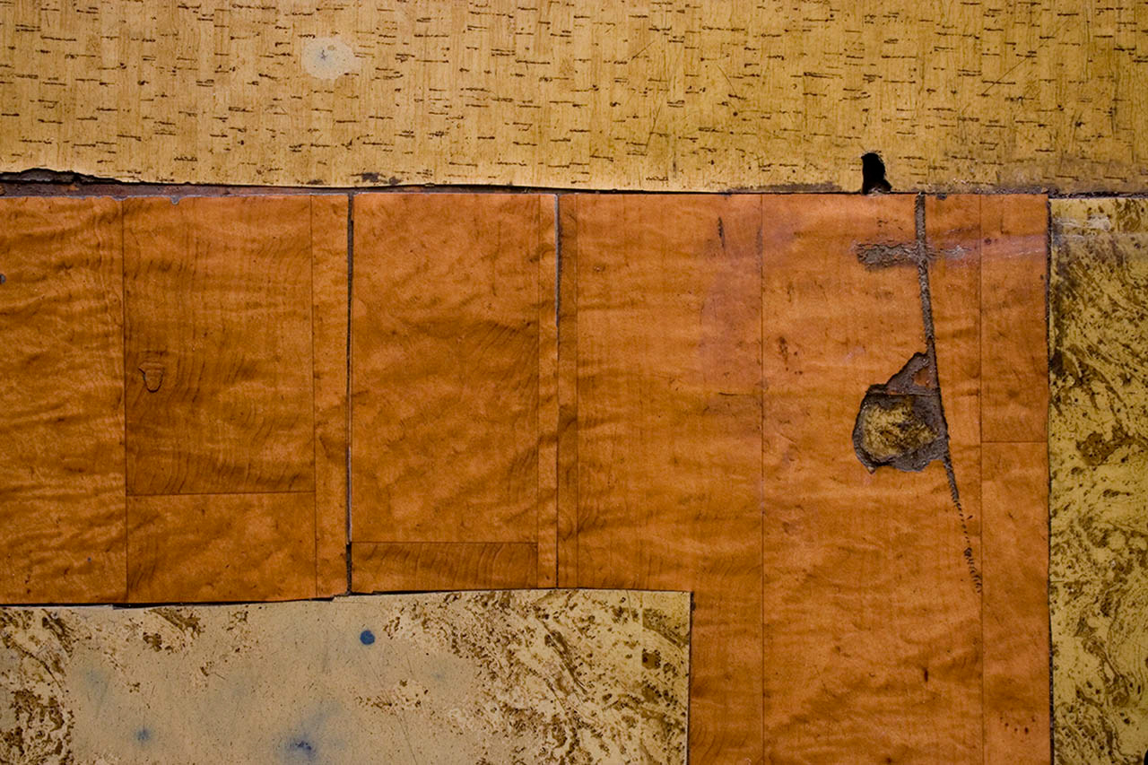 A series of linoleums in which patterns, defects and repairs create abstract images. The floors were found in state hospitals and schools.
